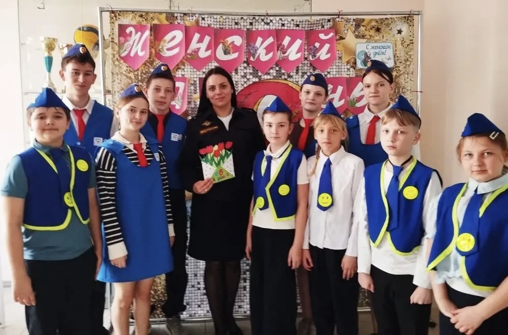 В свою очередь, юные инспекторы движения не упустили возможности поздравить Оксану Владимировну с  Международным женским днем – 8 Марта. Они пожелали ей мира, добра, благополучия и, конечно же, безопасной работы на дороге. Эти искренние слова стали лучшим подтверждением того, что работа инспектора ГИБДД, несмотря на все трудности, находит отклик в сердцах детей и приносит реальные плоды.