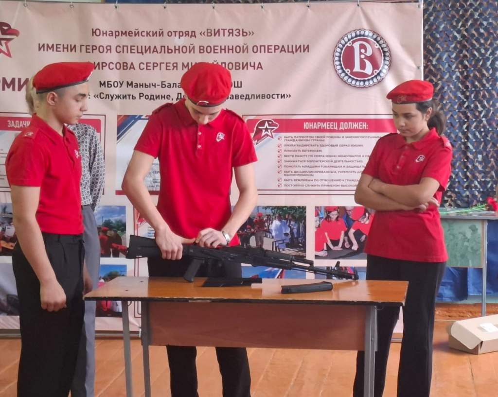 Сегодня наша страна действительно переживает сложные времена. Долг и честь проверяют не на словах, а на деле. Немало односельчан принимают участие в специальной военной операции. К сожалению, среди ребят есть и потери. На встречу со школьным юнармейским отрядом «Витязь» имени героя специальной военной операции С.М. Фирсова пришла семья погибшего на СВО военнослужащего Леника Давидовича Алексанян с подарком, учебным макетом АК 74 М. «Мой брат Леник проучился в этой школе всего год, но он всегда с теплотой вспоминал школьные годы. В память о своём брате моя семья решила сделать подарок школе, а именно юнармейскому отряду, ребятам, которые сегодня учатся быть защитниками своей страны, её интересов, культурных и духовных традиций. Для нас это очень важно!» — отметила Гаяна Давидовна — сестра погибшего военнослужащего. Она пожелала ребятам победы в строевых смотрах и конкурсах, успехов и мирного неба над головой. Юнармейцы с теплотой поблагодарили семью Алексаняна Ленника Давыдовича за столь дорогой подарок. Для всех учащихся школы и учителей семья и родственники Ленника Давидовича принесли сладкие подарки.