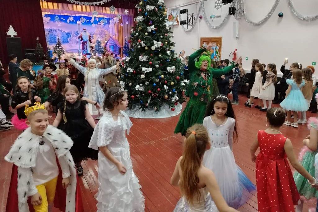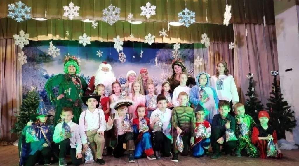 Гостеприимно встретили своих маленьких гостей Районный Дом культуры: разноцветные, сверкающие гирлянды и ярко украшенная ёлочка, красочные фотозоны в фойе, сказочные декорации на сцене РДК принесли ребятам ощущение новогоднего чуда. С самого начала представления сказочные герои увлекают детей в волшебный мир новогодних чудес. Дети погрузились в праздничную атмосферу приключений с Дедом Морозом (В. Демьяненко), Снегурочкой (О. Топилина), Бабой Ягой ( О. Малыхина), Кикиморой (О. Гапонова), Шишиморой (Л. Парфенова), Волшебным Мешком ( Л. Вальвакова).