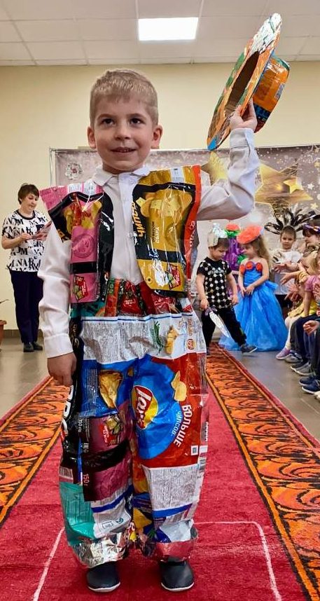 Накануне праздника дошкольники под руководством воспитателя Елены Владимировны Волковой организовали сбор вторсырья, которое затем превратилось в настоящие произведения искусства. Из обычных фантиков, металлических крышечек, упаковок от чипсов и кукурузных палочек, а также цветного полиэтилена были созданы удивительные наряды.