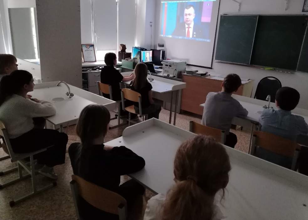 В Красноманычской школе ребята посмотрели видеоинтервью с Артуром Орловым, героем России, председателем правления Общероссийского общественно-государственного движения детей и молодежи «Движение первых», а также с Игорем Юргиным, героем России, директором департамента государственной политики в сфере воспитания, дополнительного образования и детского отдыха Минпросвещения России. В интервью с ним затрагивались актуальные темы и поднимались вопросы, которые обучающиеся чаще всего задают на встречах с бойцами СВО: про стойкость, мужество и патриотизм, долг и личную ответственность. Личная история — самый сильный способ достучаться до сердца каждого.