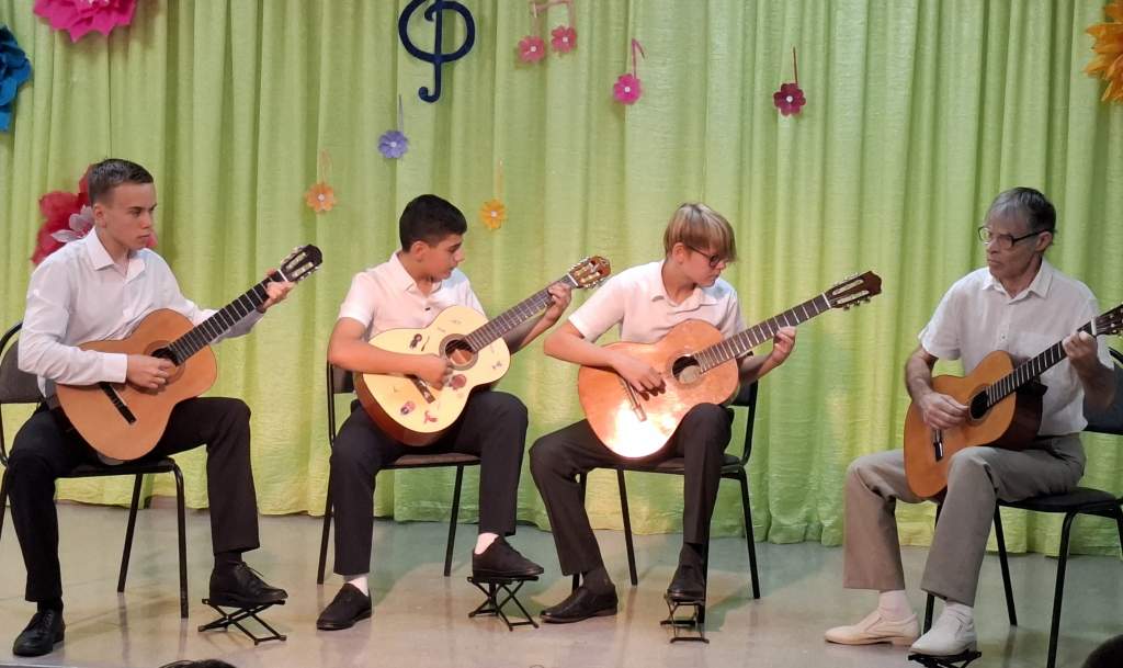 Кульминацией встречи стали яркие концертные патриотические выступления учащихся, наполнившие зал музыкой и творческой энергией: ансамбль гитаристов (преподаватель В.А. Хмелевский, ансамбль балалаечников (преподаватель Л.А. Кузьменко), эстрадный вокальный дуэт (преподаватель Е.В. Ильина), хореографический ансамбль «Вдохновение» (преподаватель Лямкина). дуэт пианистов (преподаватель Н.В. Аксененко), трио пианистов (преподаватель С.Ю. Курист), солисты народного отделения, (преподаватель И.Н. Глубокова и В.И. Усова), фольклорный ансамбль «Светелки» (преподаватель Е.Н. Нечетайленко).