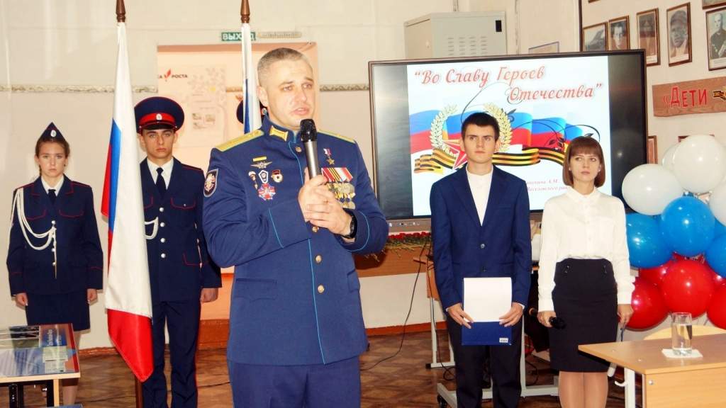 7 октября в рамках патриотического мероприятия «Во Славу Героев Отечества» в Веселовской школе № 2 состоялась встреча российского военнослужащего, гвардии младшего лейтенанта 22-й отдельной бригады специального назначения Главного управления Генерального штаба Вооружённых сил Российской Федерации, участника специальной военной операции на Украине, Героя Российской Федерации Андрея Михайловича Манухина с учащимися школы.
