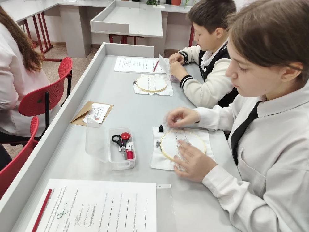 Урок был организован для учеников пятого класса и стал настоящим погружением в мир текстильного мастерства. Наталья Викторовна продемонстрировала не только глубокое знание предмета, но и умение увлечь детей, сделать процесс обучения интересным и доступным. Пятиклассники с неподдельным энтузиазмом осваивали различные виды швов, разбирая их назначение и особенности. Особое внимание было уделено детальному изучению и практическому применению шва «шнурок» – техники, которая открывает широкие возможности для декорирования и создания уникальных изделий.