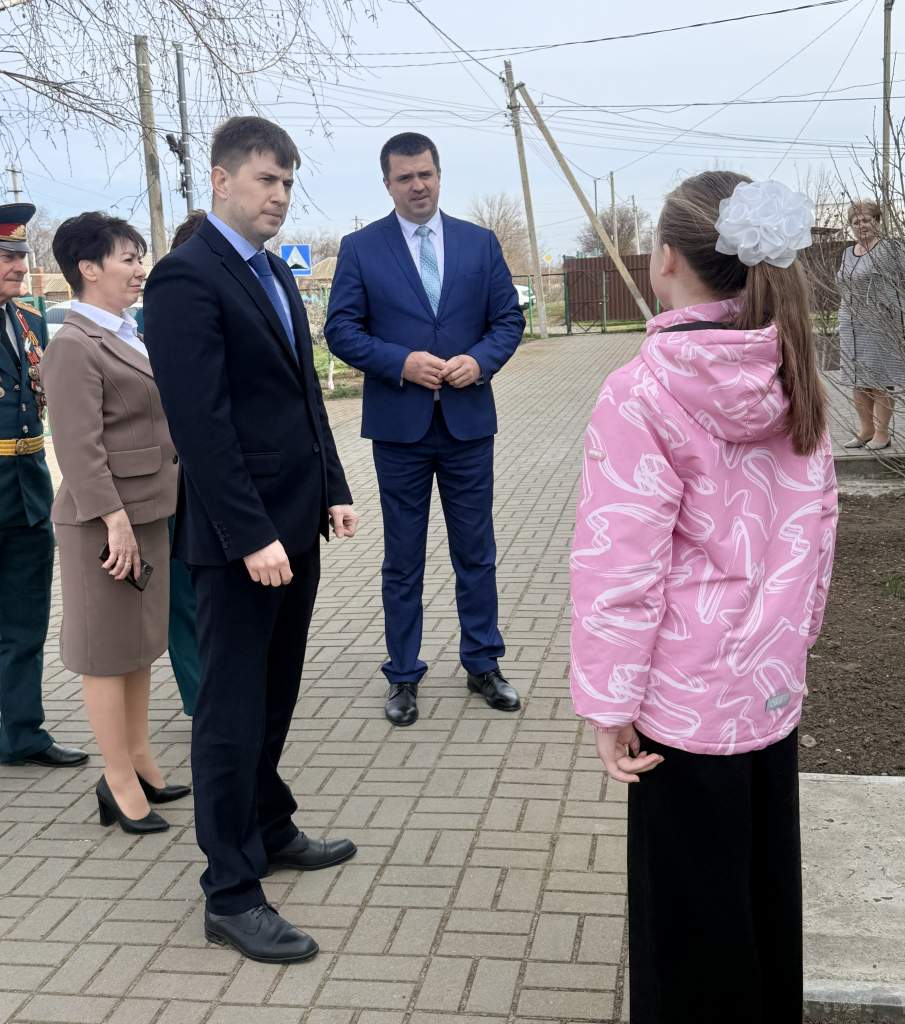 Начало рабочей поездки в район началось с посещения Краснооктябрьской школы. Встречали Дмитрия Викторовича Водолацкого Глава Веселовского района Алексей Павлович Панкратов, главаАдминистрации Краснооктябрьского сельского поселения Ольга Ивановна Курица, директор Краснооктябрьской школы Инна Анатольевна Рябоволова, председатель Совета Веселовской районной организации ветеранов (пенсионеров) войны, труда, вооруженных сил и правоохранительных органов Александр Михайлович Баклан.