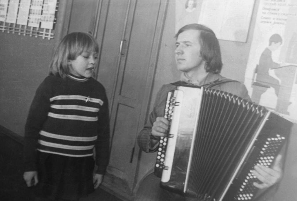 — Практику я проходил в сельской школе, которую посещали, как деревенские ребята, так и воспитанники детского дома. Сильно отличались дети друг от друга, с ними было сложно, но оставить начатое, никогда не хотелось. Уже тогда я почувствовал, что выбор сделан верный, по душе. Поэтому, когда мне всё-таки уже после службы в армии, удалось устроиться в родную школу учителем и принять в классное руководство свой первый класс, моей любимой методикой стала практика «музыкальных пятиминуток». Вся школа сбегалась послушать и посмотреть, какой же вид активности сейчас у моих учеников – танцы, песни, иль какая игра. И что примечательно, успеваемость у моих учеников улучшалась день ото дня. Общаясь и сейчас с выпускниками тех лет, я знаю, что их судьбы сложились хорошо, они нашли свою дорогу в жизни и во многом, проложить её им помогла музыка. Мы разучили с детьми более 15 танцев, море песен, стали выезжать с концертами в соседние хозяйства, где я читал лекцию по обществознанию, а затем выступали дети. Нравилось мне также работать в школе худруком, но вот одно огорчало, что ставка учителя музыки тогда была занята. Да и сами пятиминутки на уроках, а тем более музыкальные, особо не приветствовались руководством. Не было тогда ещё такой утвержденной методики в работе учителя.