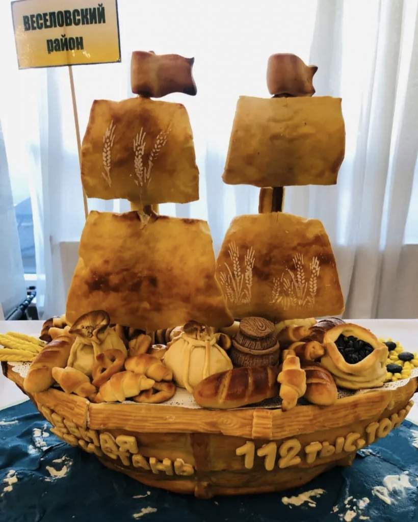 Каравай-кораблик, приготовленный Заирой, и занявший одно из призовых мест на праздновании Дня сельского хозяйства в 2025 году в городе Ростове-на-Дону