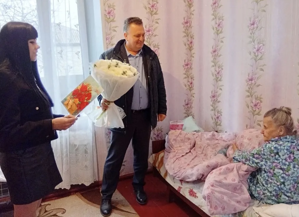 Сотрудники администрации Верхнесолёновского сельского поселения с Главой поселения Иваном Ивановичем Бухвалом сердечно поздравили юбиляршу с торжественной датой, передав подарки и поздравления Главы Весёловского района Алексея Павловича Панкратова. Имениннице были вручены цветы, праздничные открытки и памятный подарок.